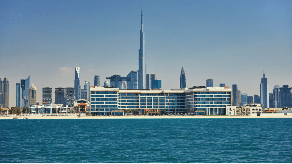 Blick auf das Mandarin Oriental Jumeirah vom Meer aus