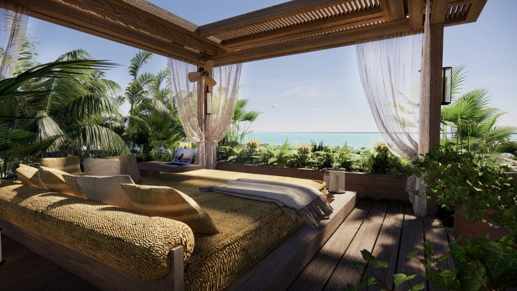 Der Charme von Belize sowie der mittelamerikanische Dschungel und die historischen Maya-Tempel fliessen in das Design der Residenzen ein. Diese wurden Studio Caban entworfen und bieten einen übergreifenden Indoor-Outdoor-Lifestyle – angepasst an das karibische Klima. Als Teil jeder Residenz ergänzt eine frei stehende Lock-Off-Villa die Wohnfläche. Diese kann von den neuen Eigentümern separat vermietet oder für die Unterbringung von Gästen genutzt werden. Das Highlight ist hier die versteckte Dachterrasse mit Blick aufs Meer. Die Residenzen, die in Zukunft Platz für 33 Familien bieten sollen, haben eine Grösse von einem bis sieben Schlafzimmern. Ein grosser Pool sowie ein privater Strandabschnitt mit Liegemöglichkeiten gehören ebenfalls zur Ausstattung.