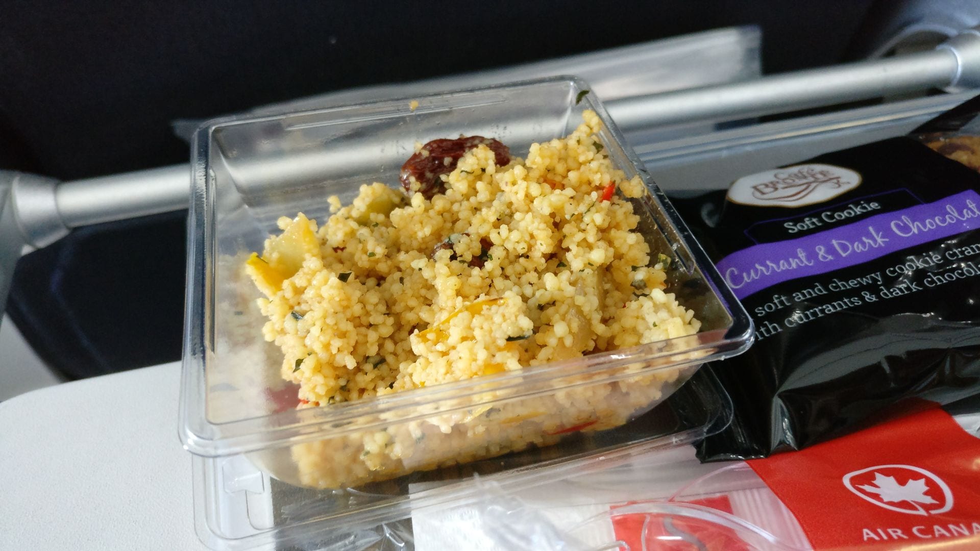 Bezüglich der Verpflegung habe ich in der Economy Class keine allzu grossen Ansprüche. Meine Erwartungshaltung war für Air Canada in etwa auf dem Level von dem, was etwa British Airways in der Eocnomy Class bietet. Dahingehend wurde ich am Ende nicht überrascht, denn Air Canada konnte sich weder auszeichnen noch ist mir die Airline negativ in Erinnerung geblieben. Beim ersten Flug wurde zuerst ein Mittagessen serviert.