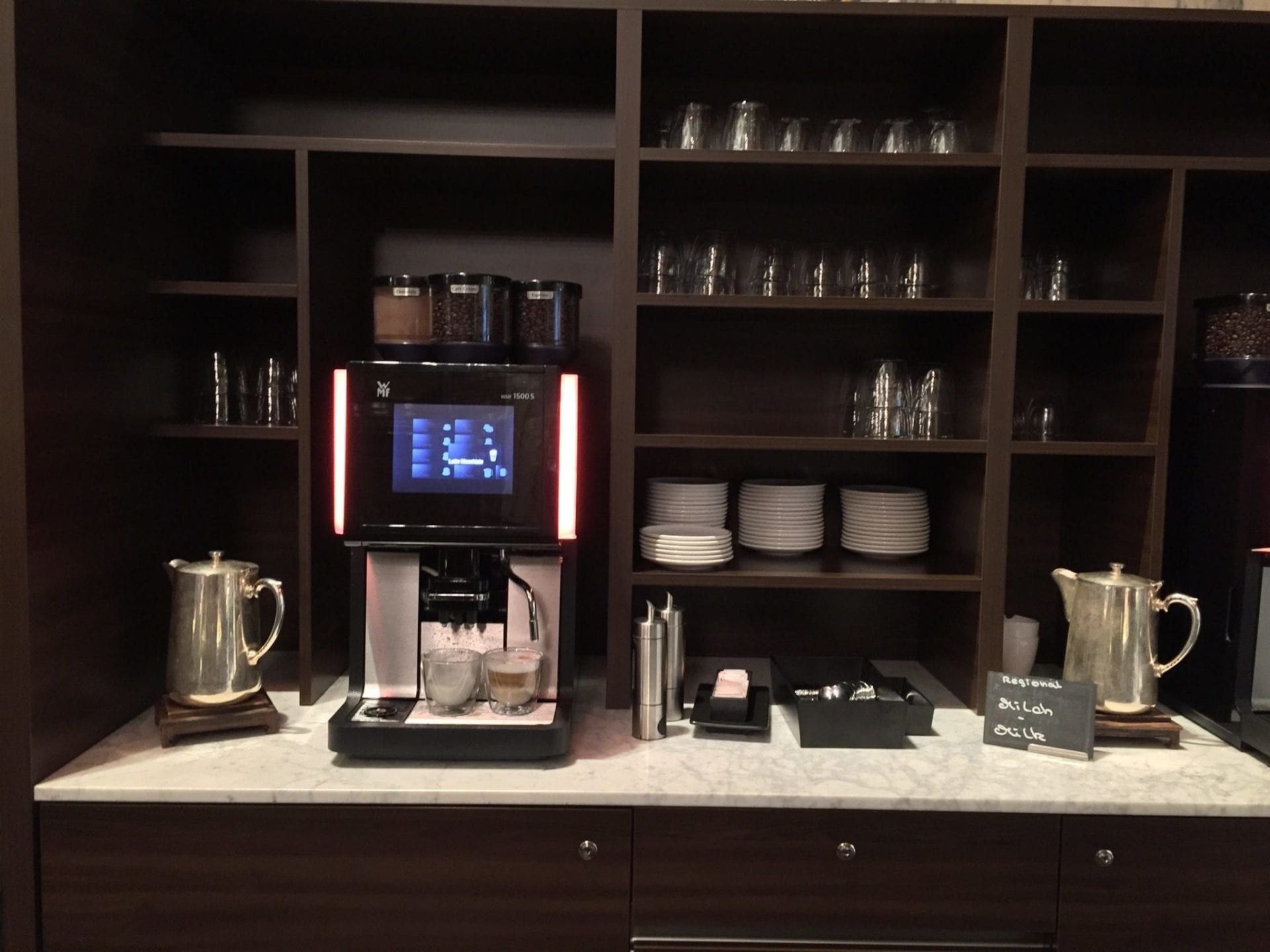 Der Kaffee war ebenfalls sehr gut. Direkt neben der Kaffeemaschine befindet sich zudem ein Bereich nur für Tee.