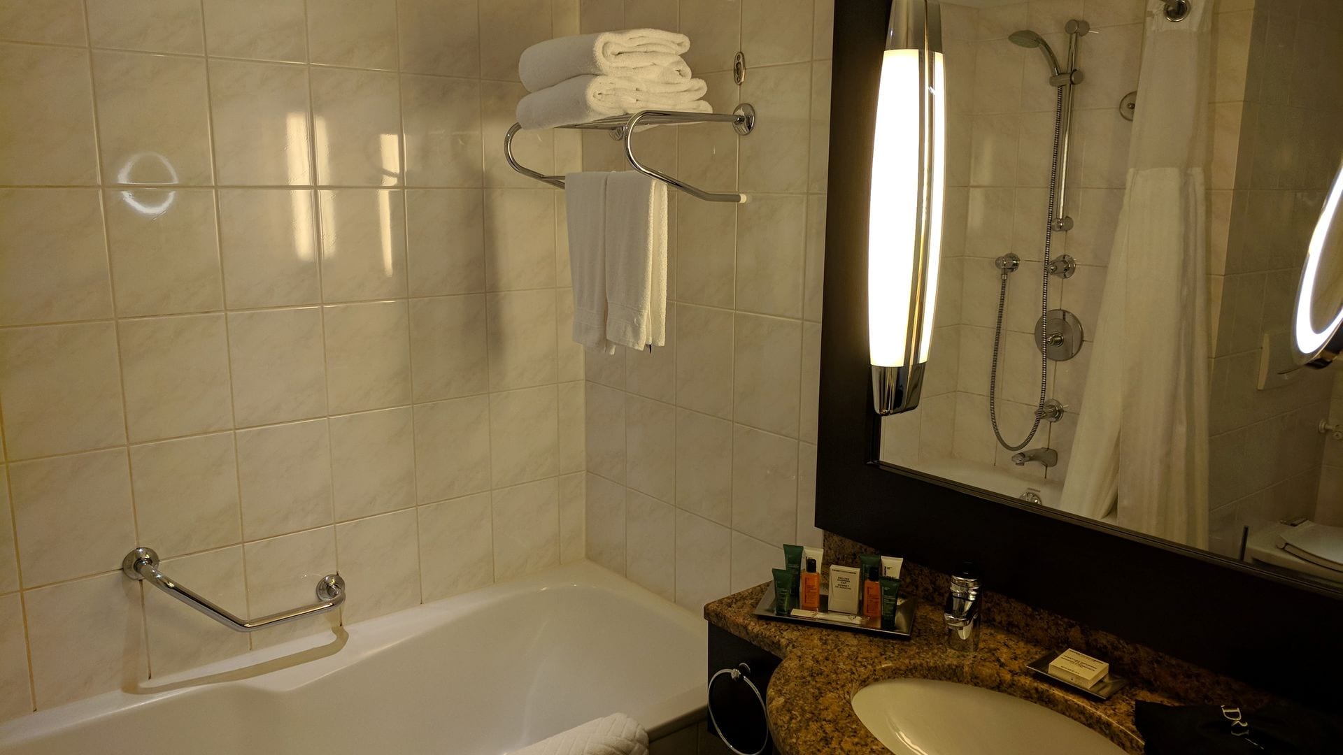 Alles in allem finde ich die Zimmer im Hilton München Park aber dennoch recht gelungen. Besonders die Grösse und der Balkon sind Alleinstellungsmerkmale in Münchener Hotels dieser Kategorie. Zumindest ausserhalb des Bads sind die Zimmer zudem modern und hochwertig eingerichtet. Auch der nette Ausblick wusste zu gefallen.