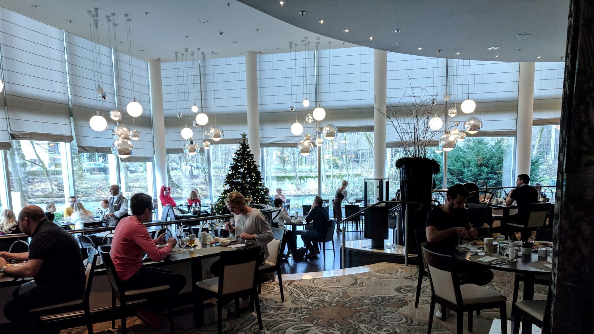 Grundsätzlich finde ich das Frühstück im Hilton München Park durchaus empfehlenswert, denn man bietet eine enorm reichhaltige Auswahl inklusive Highlights wie eine Tasting Corner oder wirklich frisch gepressten Orangensaft. Am Fenster mit Blick auf den Eisbach finden sich zudem auch sehr nette Sitzgelegenheiten. Trotz alledem ist angesichts der Grösse des Hotels das Frühstück zu Stosszeiten heillos überlaufen.