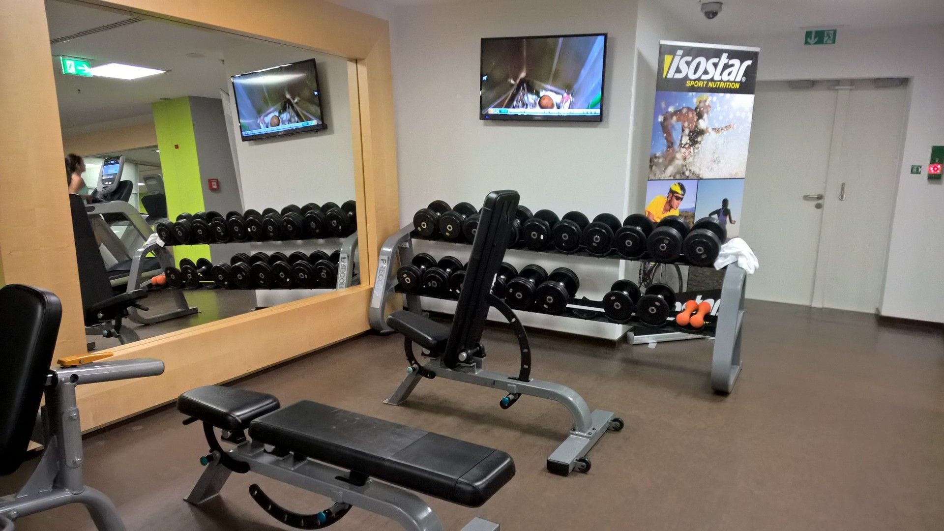 Das Hilton München Park bietet neben den anderen Fazilitäten auch noch einen kleinen Erholungsbereich im Keller. Dieser besteht aus einem ordentlich ausgerüsteten Fitnessraum mit ordentlicher Ausstattung, unter anderem auch mit verschiedenen Hanteln.
