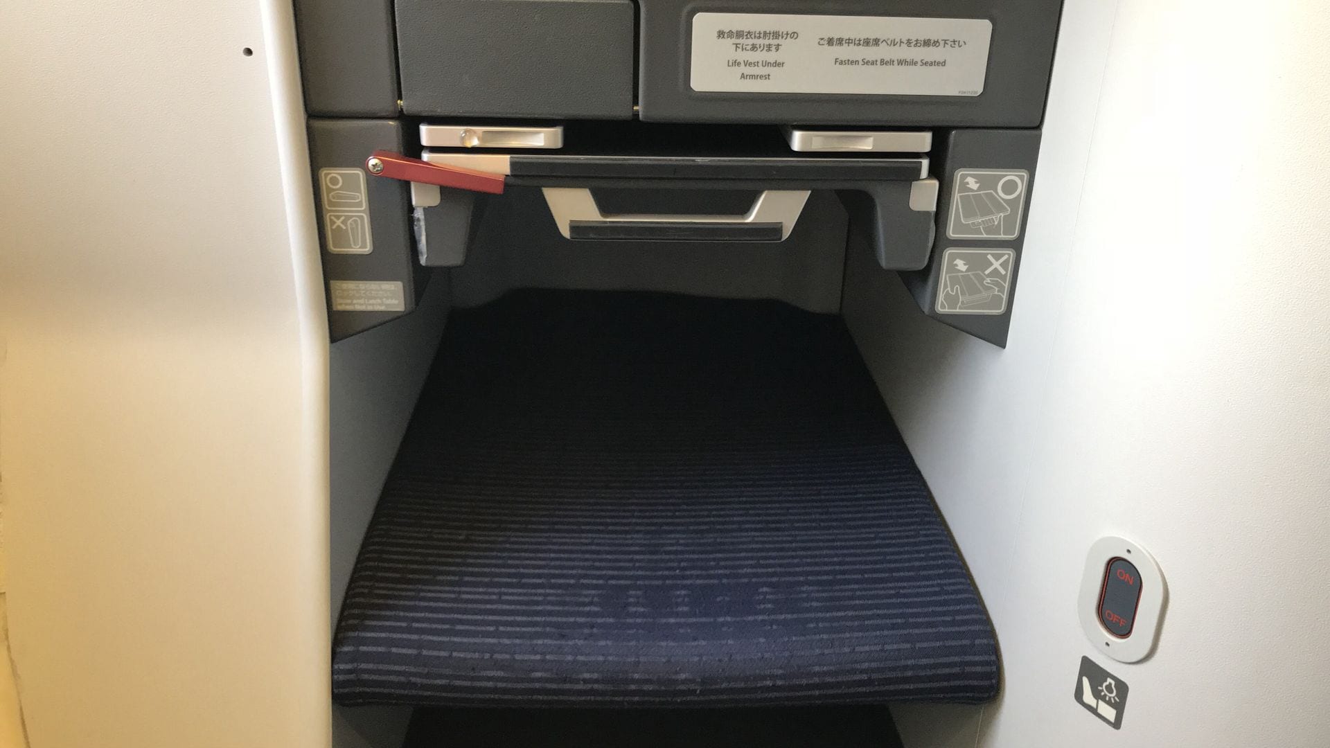 Der vorhandene Stauraum am Sitz gefiel mir gut, es gibt genügend Ablageflächen und Stauplatz. Auch die Fussablage ist im Normalfall gross genug, obwohl es beim Schlafen etwas eng werden kann. Im Sitz verbaut sind der Stromanschluss, USB-Anschluss sowie die Fernbedienung für das Unterhaltungssystem und die Sitzkontrollschalter.