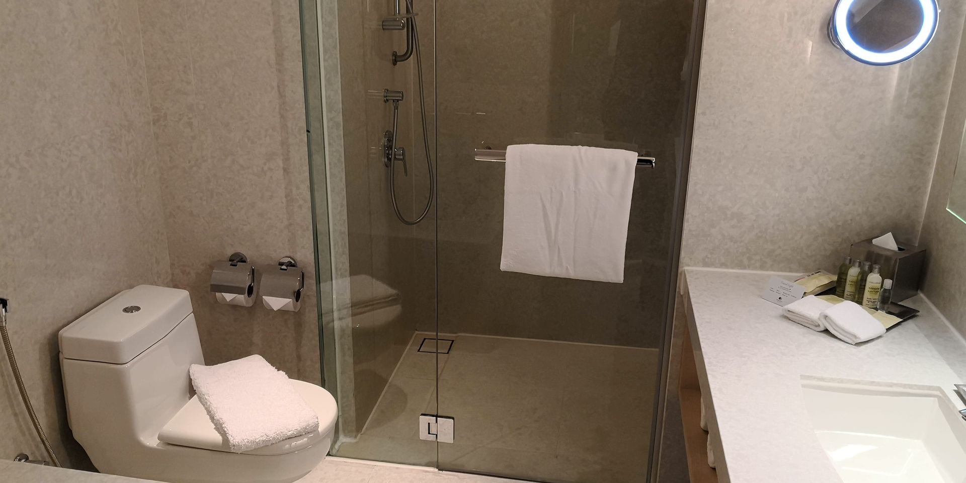 Die Zimmer im DoubleTree Johur Bahru sind recht gross und hell. Es erwartet einen eine moderne Einrichtung im typischen DoubleTree-Design. Den Gästen stehen im Zimmer jederzeit etliche Wasserflaschen zur Verfügung, was bei dem warm-feuchten Wetter sehr hilfreich und angenehm ist.