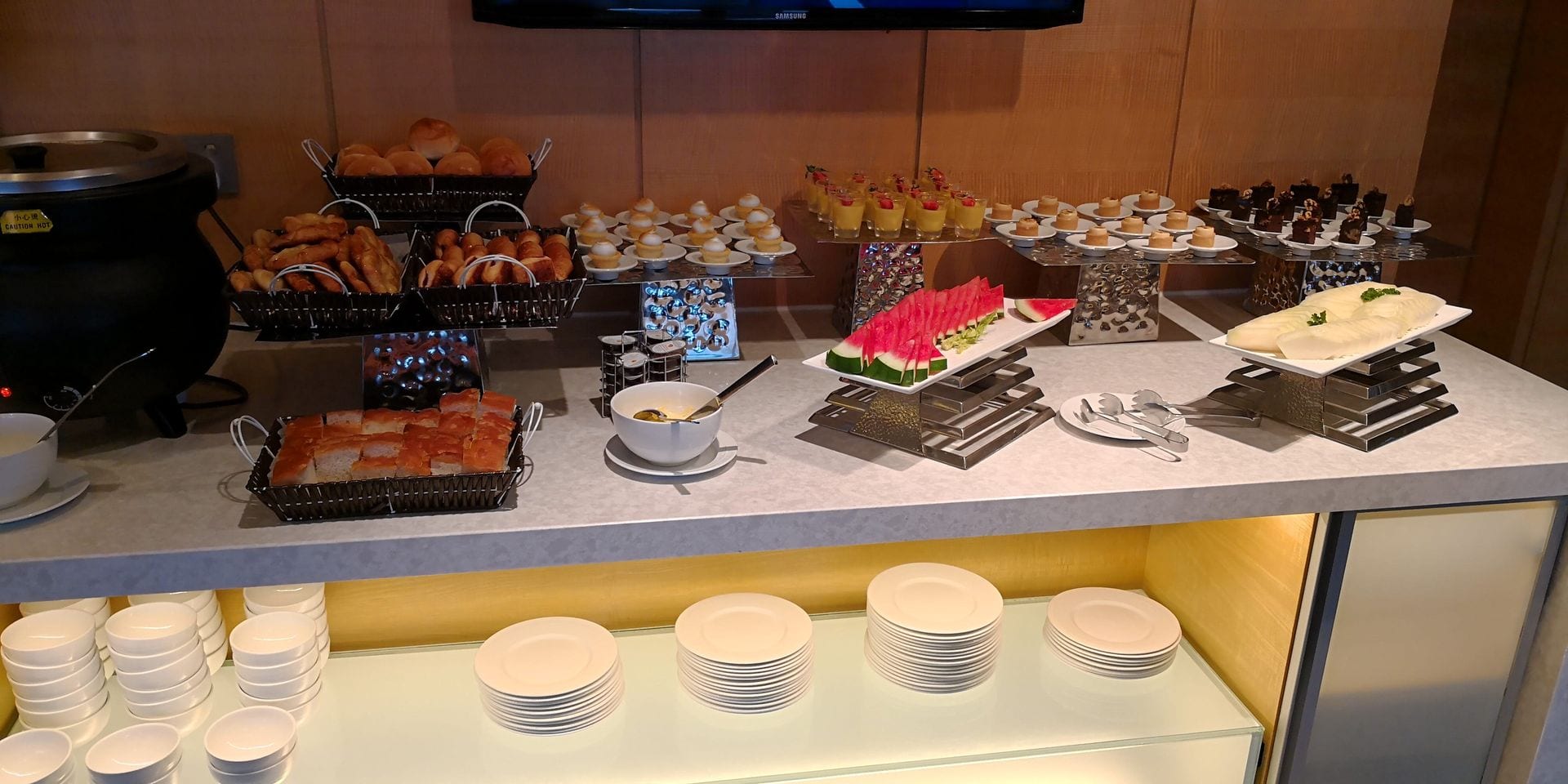 Das Frühstück morgens ist recht vielfältig und gut. Selbst die Bestellung von Eiergerichten funktioniert wunderbar. Wenn man also eher auf ein ruhiges Frühstück mit Blick auf Johor Bahru steht als auf einen vollen Frühstücksraum, ist die Lounge eine sehr gute Alternative.