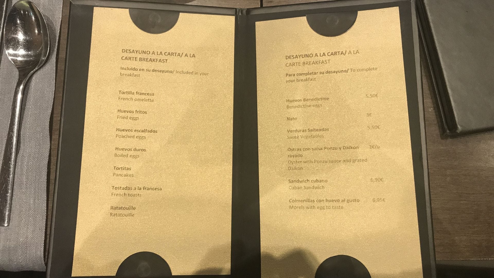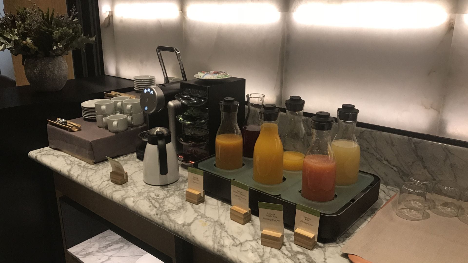 Hier gibt es ein kleines Buffet mit Gebäck und Säften sowie ein weiteres Buffet in einem Nebenraum, wo sich zahlreiche spanische Optionen und die “Klassiker” des Hotelfrühstücks befinden.