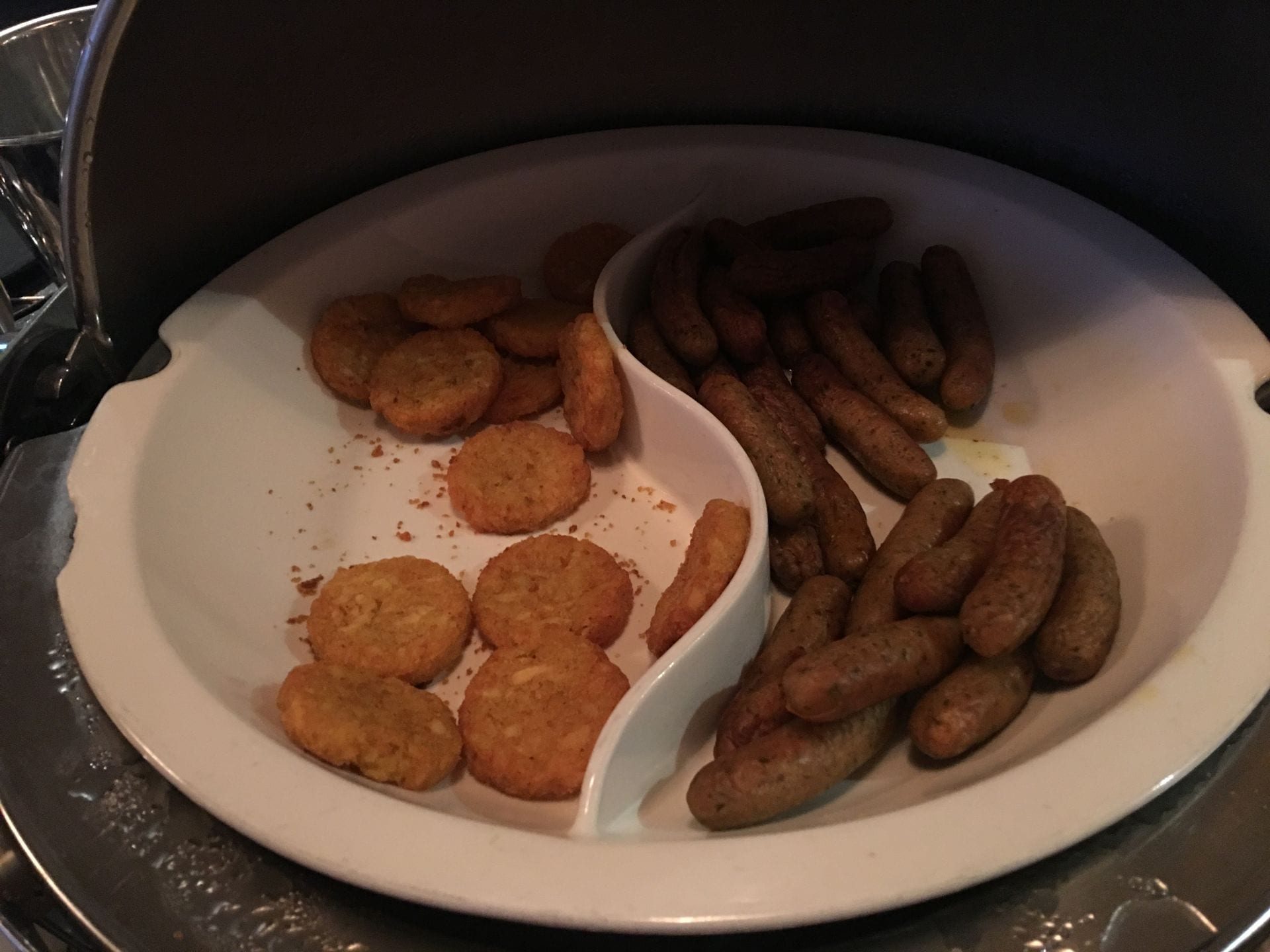Es gibt eine breite Auswahl an Aufschnitt, Joghurt, Cornflakes und die typischen warmen Frühstücksspeisen. Wie in Hilton Hotels üblich, kann man auch frisch zubereitete Eierspeisen bestellen, etwa Spiegeleire. Besonders positiv sind die typischen holländische Poffertjes (kleine Pfannkuchen).
