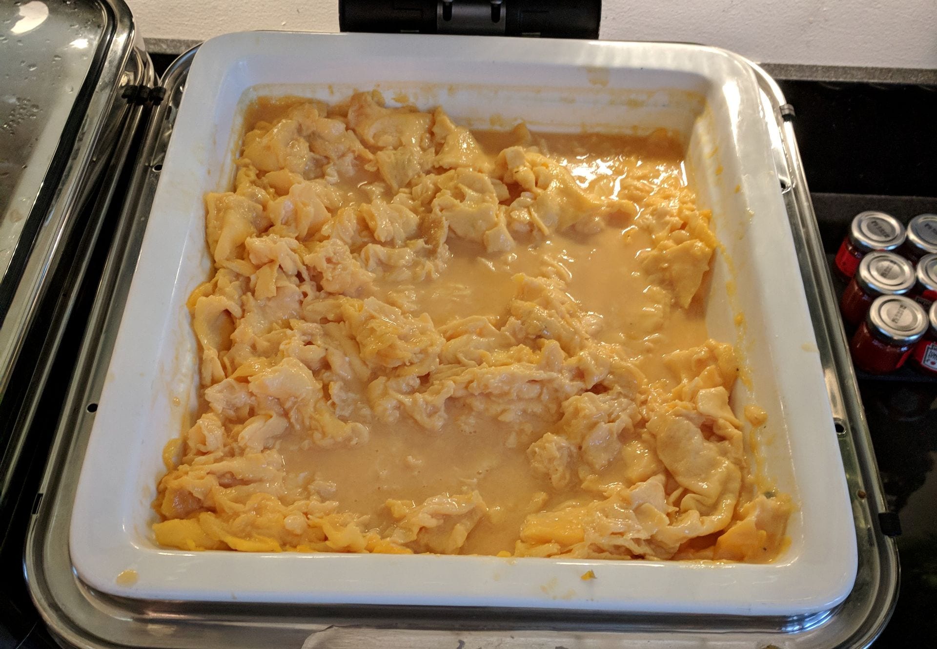 Grundsätzlich positiv: Man kann bei den aufmerksamen und freundlichen Kellnern auch frische Eierspeisen bestellen. Weniger erfreulich fand ich das Gericht selber, was man wohl am ehesten als Eggs Benedict “Suppe” bezeichnen könnte. Die Hollondaise war leider missglückt und die Toastscheibe entsprechend ertränkt. Auch die Eierspeisen am Büffet sahen wenig appetitlich aus.