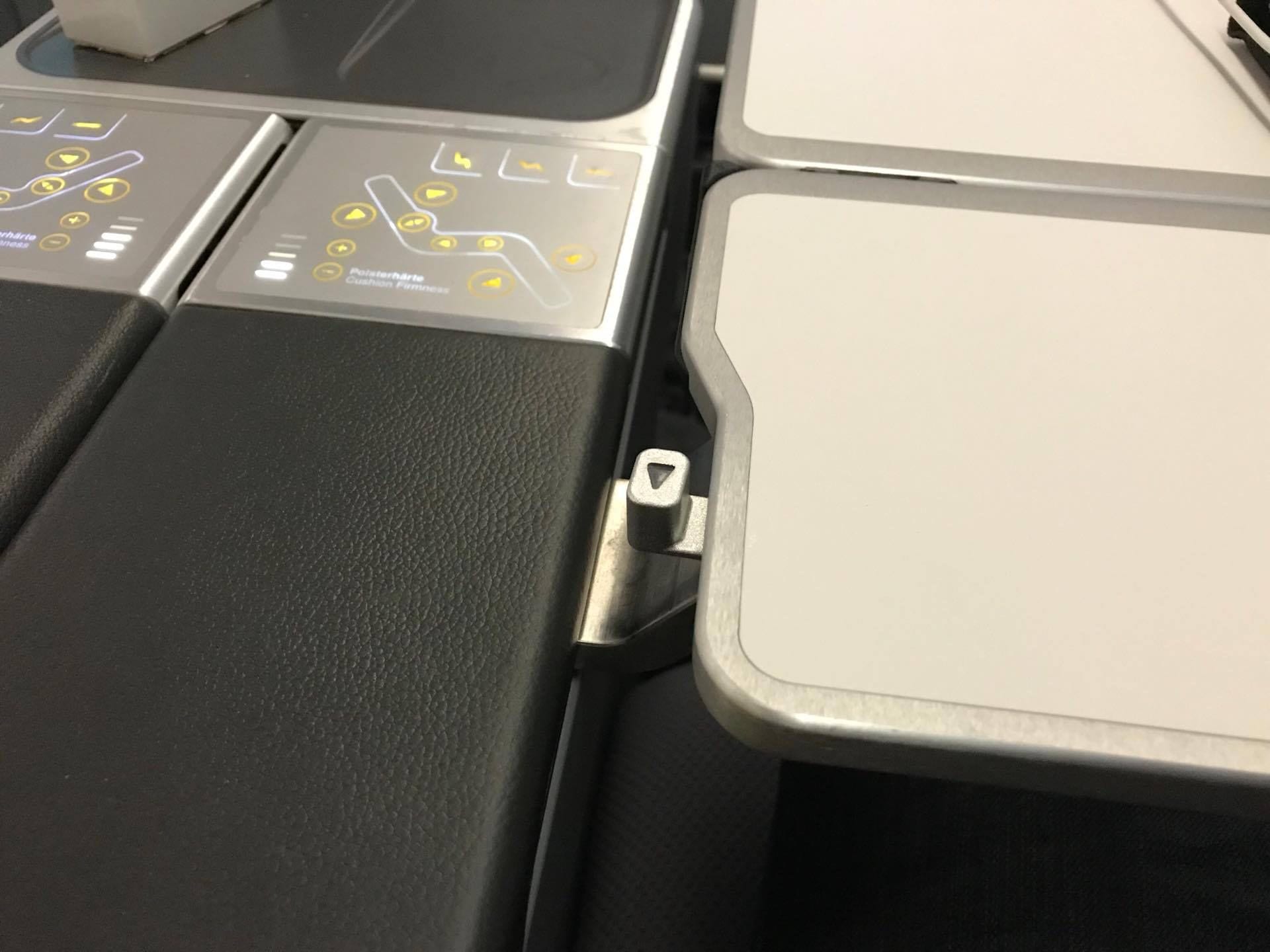 Ausserdem kann hier auch der Tisch herausgezogen werden, was meiner Meinung nach etwas schwergängig ist. Problematisch ist natürlich, dass die Lufthansa Business Class nicht von jedem Sitz direkten Zugang zum Gang bietet und auch die Privatsphäre eingeschränkt ist. Hier überzeugt etwa die Swiss Business Class auf der Langstrecke mehr.