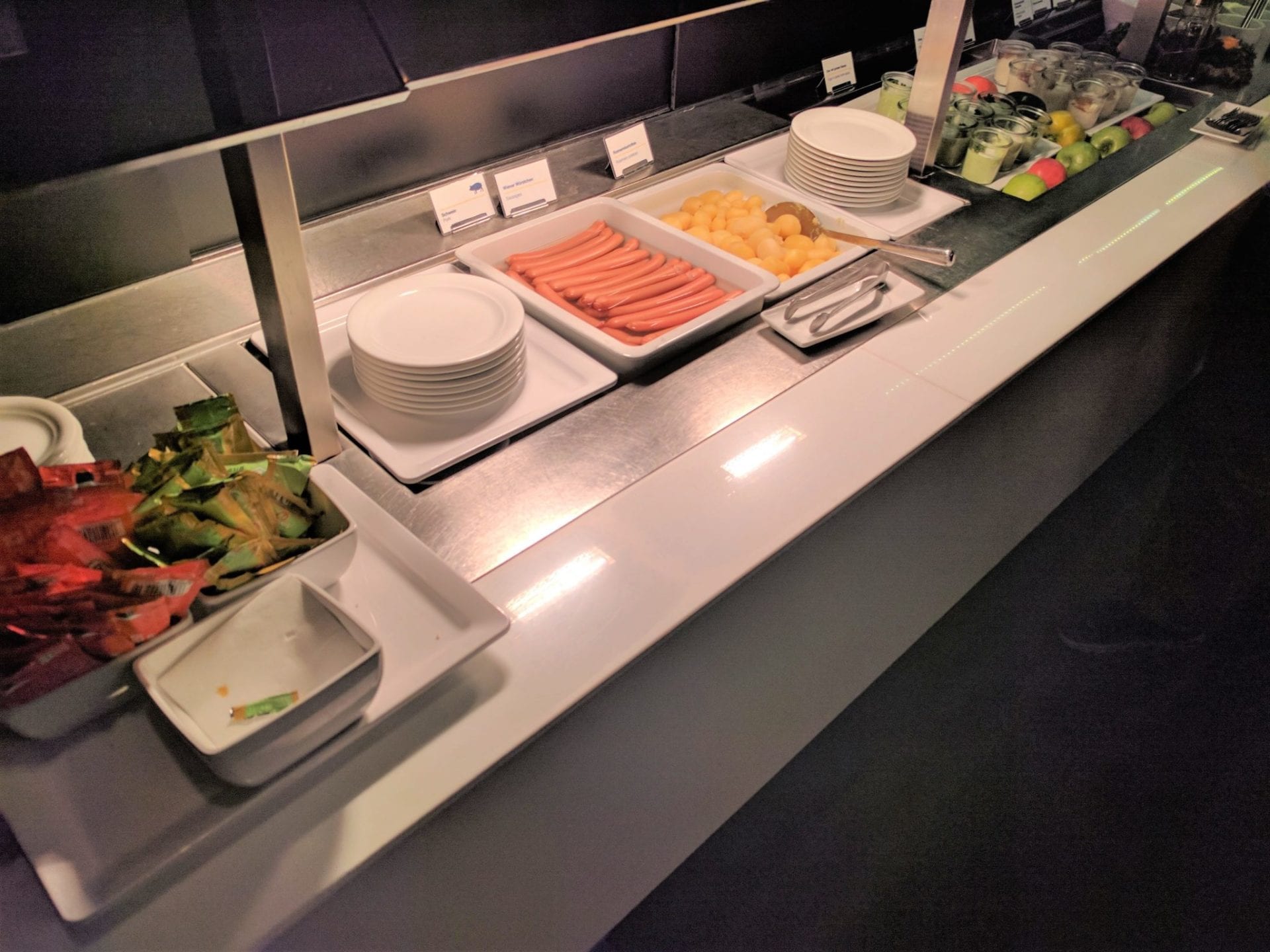 Beim Thema Speisen und Getränke muss man bei einer Business Lounge natürlich Abstriche im Vergleich zur Senator Lounge in Kauf nehmen. Immerhin gab es eine warme Auswahl bestehend aus Bockwürsten, Kartoffeln und Suppe. Ausserdem sind eine gute Salatauswahl, Brezeln und Berliner im Angebot.