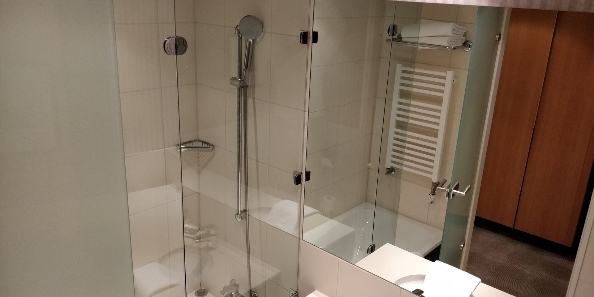 Ich erhielt ein Executive Zimmer mit Blick auf den Innenhof, was mich beim kurzen Aufenthalt allerdings nicht gross gestört hat. Direkt nach dem Eingang befindet sich auf der rechten Seite das Bad, in welchem Ihr eine Badewanne und Dusche in einem findet. Gestört hat mich hier allerdings der nicht so kräftige Föhn, ich halt dies tatsächlich für ein Merkmal, durch welches man ein wirklich gutes Hotel von einem Mittelklasse-Hotel unterscheiden kann.