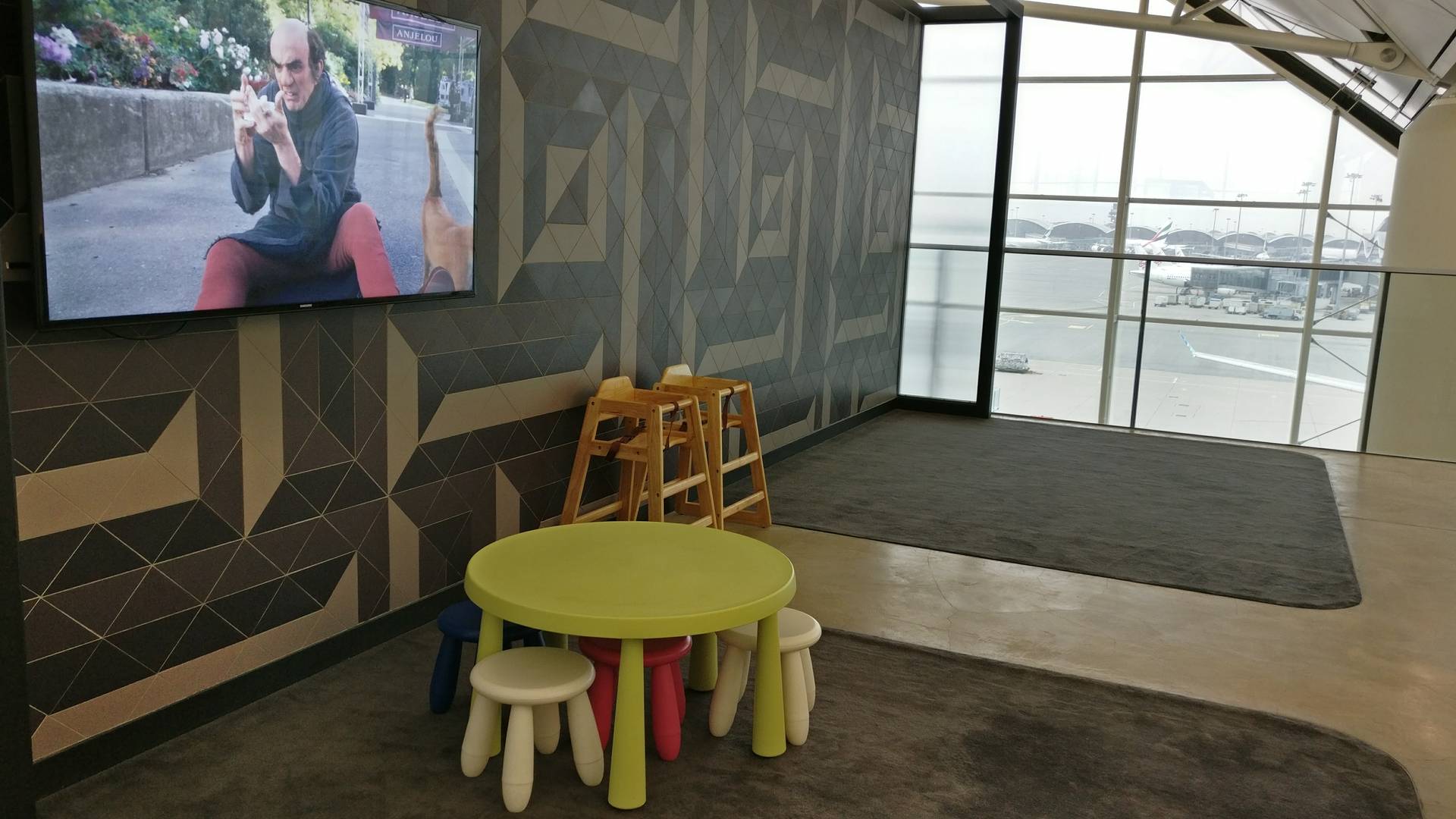 Hinter dem Essbereich gibt es in der Qantas Lounge Hongkong erneut eine grosse Anzahl von Sitzecken und einen Spielbereich für Kinder. Viele Bereiche haben ausserdem einen riesigen Fernseher mit australischem Fernsehen im Dauerbetrieb.