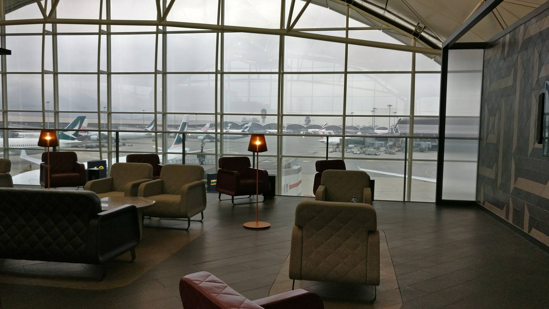 Würde ich die Qantas Lounge Hongkong gross nennen, wäre es eine Untertreibung. Parallel zur Fensterfront dauert es einige Zeit, bis man von der einen zur anderen Seite der Lounge gekommen ist.