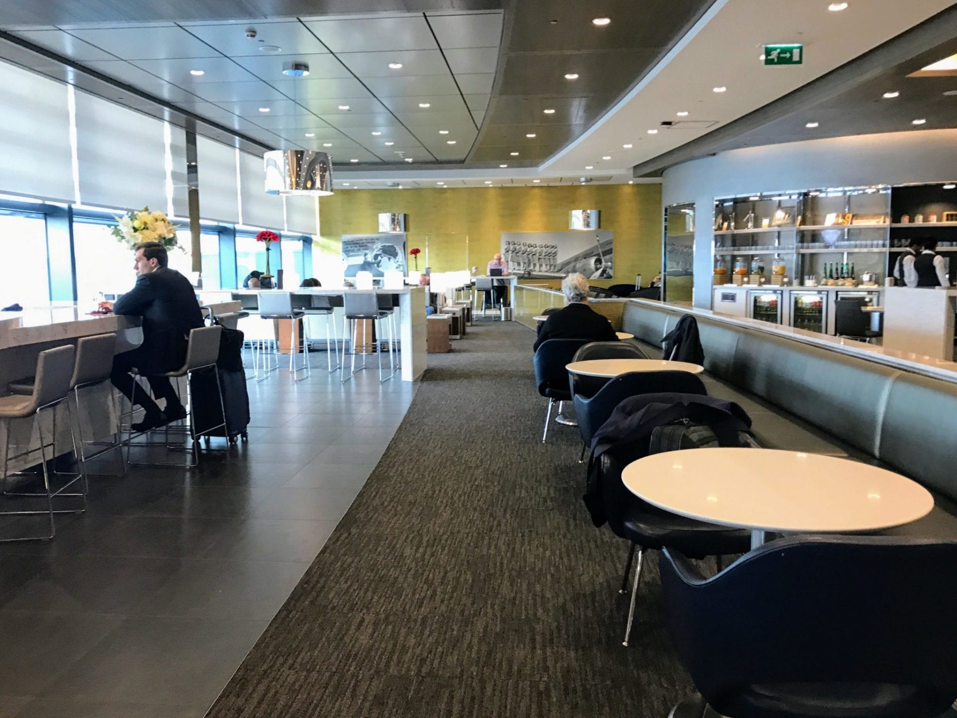 Die Duschkabinen sind sehr geräumig und hochwertig und eignen sich vor einem langen Flug besonders, um sich kurz aufzufrischen. WLAN, Zeitschriften und diverse Magazinen sind ebenfalls vorhanden. Steckdosen ausgestattet mit USB Anschlüssen findet Ihr an zahlreichen Sitzen in der Lounge. Obwohl die Lounge während meines Aufenhalts relativ voll war, sorgt die Grösse und die Verteilung der verschiedenen Bereiche dafür, dass es besonders ruhig und angenehm auch zu den Stosszeiten bleibt.